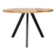 Mesa de centro fabricada en madera maciza de acacia y patas metálicas con unas dimensiones de 120x80x46cm y un espesor superficial de 3,5cm. Su característica especial son los bordes que presenta haciendo de ella una obra de arte y una pieza única.