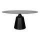 La mesa de comedor con base dorada redonda y tablero ovalado de piedra sinterizada de 160 cm es una elección elegante y refinada.
