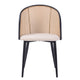 Estructura de acero negro y carcasa tapizada en cuero marrón con relleno acolchado.