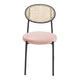 Fabricada con asiento tapizado en terciopelo y estructura en metal color negro.