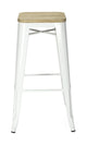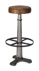Taburete de estilo vintage, fabricado en estructura de acero de color negro y tapizado en cuero natural marrón y cosido a mano.