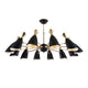 Diseño compuesto por 6 brazos fabricados en acero combinando el color negro con el oro, tanto en su estructura como en sus caperuzas, lo que lo determina para darle un toque moderno y distinguido.