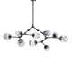 Lámpara de techo araña 9 brazos cristal azul acero negro Ball