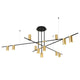 Diseño de estilo moderno compuesto por tres barras de acero horizontales y una vertical, todas en color oro y conectadas entre sí. Incorpora 6 caperuzas fabricadas tambien en acero color negro.  Incorpora dos barras, una en medida de 62 cm y otra en medida de 102 cm.