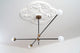 Modelo fabricado en acero color oro, que dispone de una serie de brazos los cuales incorporan caperuzas de un vidrio perfectamente transparente que difunde la luz radiantemente.