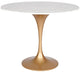 Mesa comedor Tulip acero inoxidable oro tapa mármol blanco 110cms