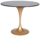 Mesa comedor Tulip dorada tapa mármol blanco 120cms
