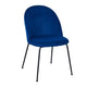 Silla con estructura de acero, tapizada en tela de terciopelo gris, con formas ergonómicas y patas negras.