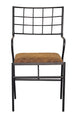 Silla estilo vintage fabricada en acero envejecido color negro-oxido y asiento y respaldo tapizados en cuero color marrón.