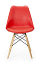 Silla de diseño, fabricada con estructura de madera de haya y carcasa de polipropileno con cojin tapizado en semipiel acorde al color de la carcasa.