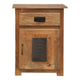 Mesita auxiliar de noche de una puerta en cuyo interior posee una balda que divide el espacio de almacenamiento en dos.