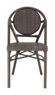 Este sillón está fabricada en rattan trenzado multicolor y con una estructura de aluminio con una imitación al bambú.
