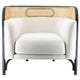 Estructura principal de madera maciza de haya. Asiento y respaldo tapizados en piel sintética ecológica en blanco o en camel.