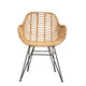 Silla fabricada artesanalmente con ratán sintético entrelazado, con forma redondeada, estructura de acero pintado en polvo color negro con topes de polipropileno.