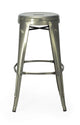 Taburete de diseño fabricado con patas de acero cromado y asiento de ABS tapizado en semipiel.