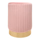 Elegante Taburete puff redondo cilíndrico con una base de metal resistente con un acabado dorado para un toque de elegancia moderna