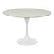 Esta imponente mesa de comedor está fabricada con pie estilo Tulip de acero lacado, disponible en colores negro, blanco, dorado y acero inoxidable oro.